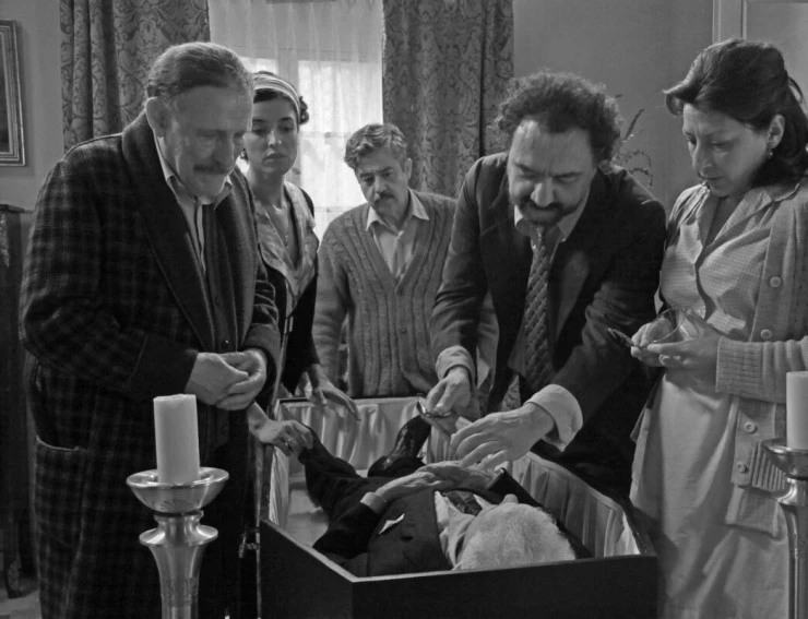 Фильм Мертвых не трогай, детка 2011 позволяет узнать развитие главных событий: Логронья, 1959-й год. Молодого начинающего поэт Фабьянито приводят в замешательство нелепые поминки по дону Фабиано, пра-прадеду Фабьянито, бывшему правительственному служащему и большому фанату корриды, потратившему в свое время все свои сбережения на покупку телевизора. Поэт страдает, абсурд крепчает: на поминки семья усопшего с нетерпением ждет прибытия...