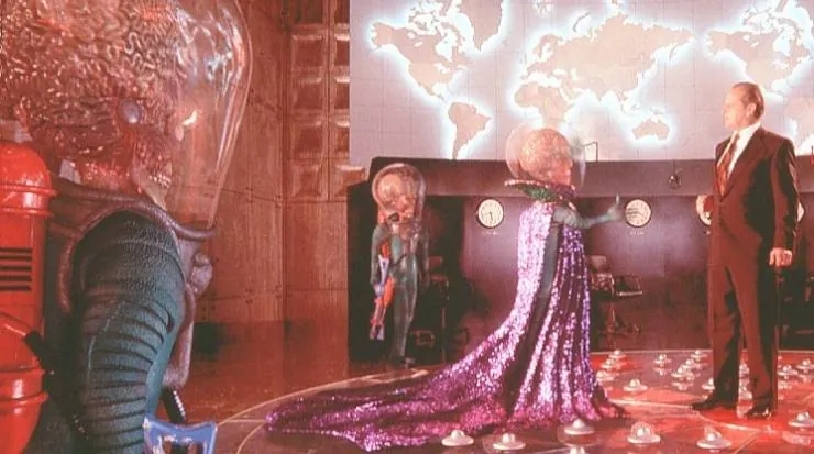 Фильм Марс атакует! 1996 позволяет узнать развитие главных событий: Наша планета подверглась чудовищному нападению. Марсиане, бесстрастные и бездушные существа, эти маленькие зеленые создания, высаживаются в пустыне со своих космических кораблей, а затем наступают на всех направлениях. Столичный Вашингтон, Лас-Вегас и другие города сотрясаются от мощнейших взрывов, разрушениям нет числа... Президент США призывает...